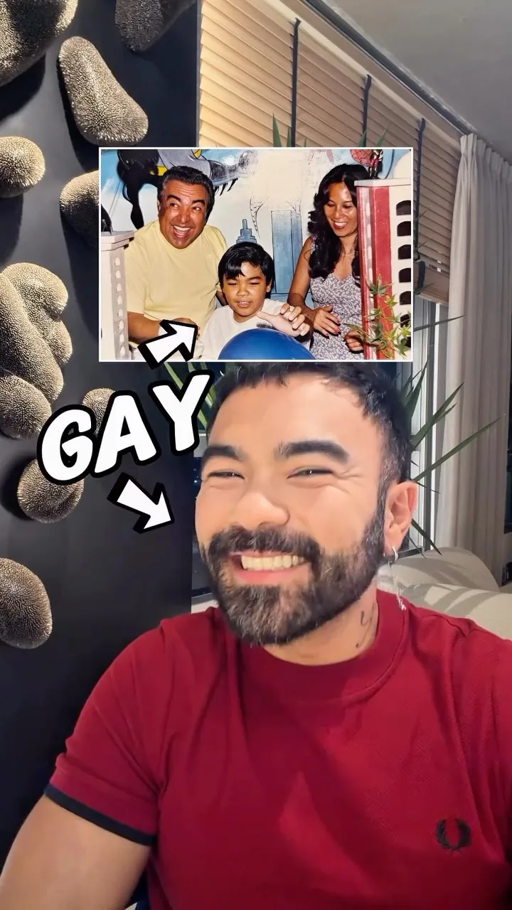 Através do Instagram, ele detalhou: "Esse sou eu no meu aniversário de dez anos, que foi a idade quando eu tive a consciência de que eu era gay", começou ele, mostrando uma foto ao lado de seu pai e sua mãe, Alice Takeda.