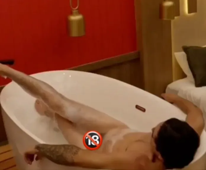 Nas imagens, o galã surgiu completamente sem roupas em uma banheira, com as partes íntimas à mostra. O registro rapidamente circulou entre os telespectadores do programa, que reúne 16 celebridades, e gerou grande repercussão nas redes sociais.