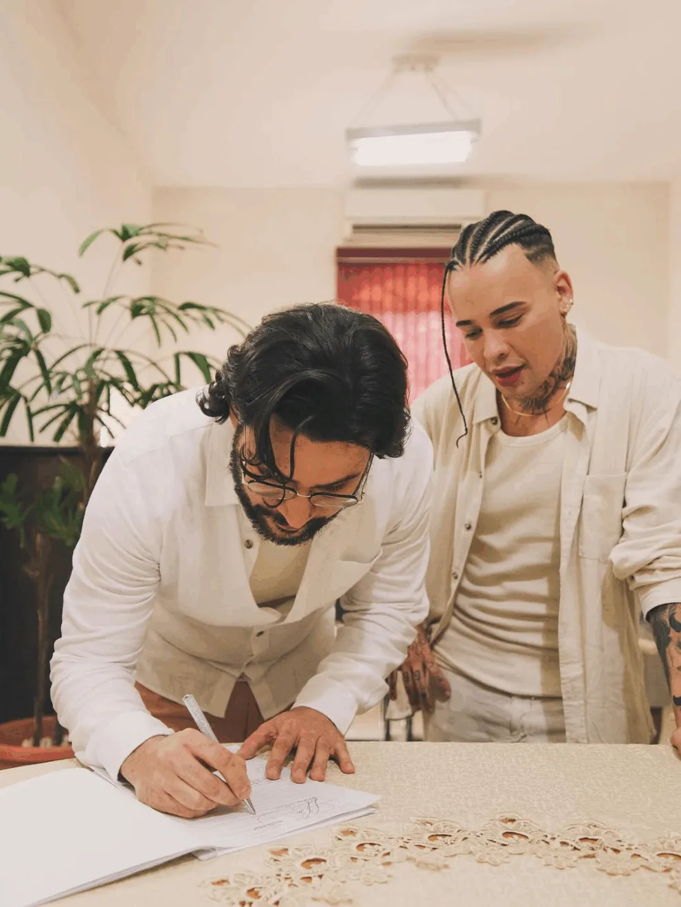 Através do Instagram, a cantora e drag queen reuniu registros da cerimônia íntima, que foi marcada pela assinatura dos papéis do casamento civil em São Paulo, cercados por familiares e amigos próximos.