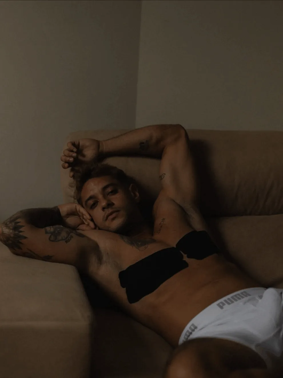 O clique, divulgado na última quinta-feira (23), chamou atenção pelo volume evidente na região íntima. Na legenda, o artista escreveu: “Me amo sem culpa.”